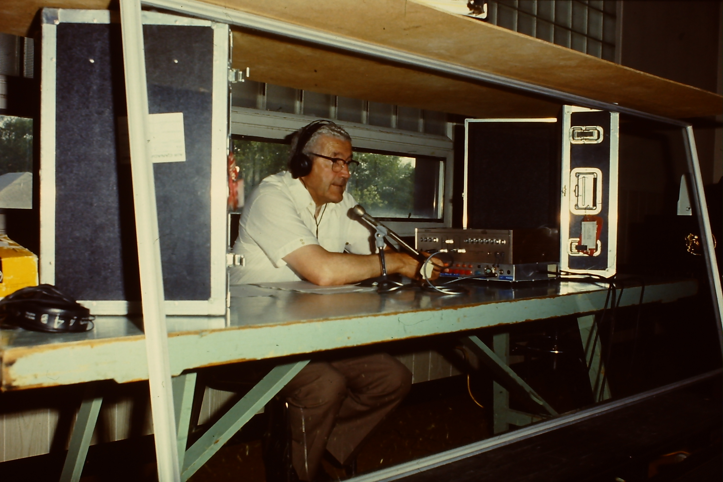 • Gerhard Ens recording a radio broadcast, 1983. (MHC ORG-E-321-889.0)